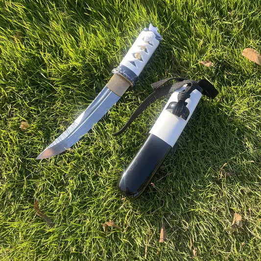 28cm/11.02in Samurai Sword - Black Handle, Black and White Spliced Sheath